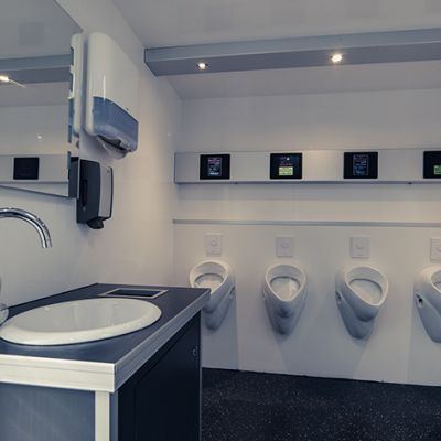 Der Name ist Programm: JUMBO bietet exklusive Gäste-WC's in großem Stil. Optimal für besucherstarke Veranstaltungen - mit viel Kapazität für Groß und Klein. Und auch ganz Klein: Jumbo bringt den Wickeltisch mit. Die einladende Optik des großen Wagens: Im Inneren dominieren Steingrau und gebrochenes Weiß. Und wie schön, dass dieses Komfort-Fahrzeug de luxe gewissermaßen auch über sich hinauswachsen kann: Neben dem JUMBO Standard bietet Lemis Ihnen auch den JUMBO XL mit 6/2 Damen- bzw. Herren-WCs und 7 Urinalen und den JUMBO XXL mit sogar 8/2 Damen- bzw. Herren-WCs und 6 Urinalen.